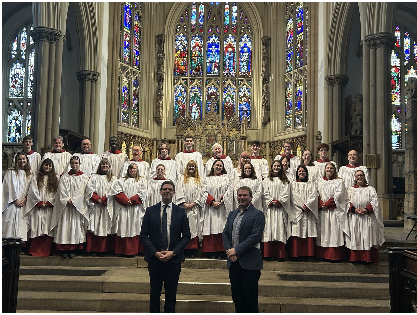 Photo © Shaun Turnbull The Minster Choir with Alexander Woodrow (Director of Music) and Ed Jones (Cathedral Music Trust Local Ambassador)