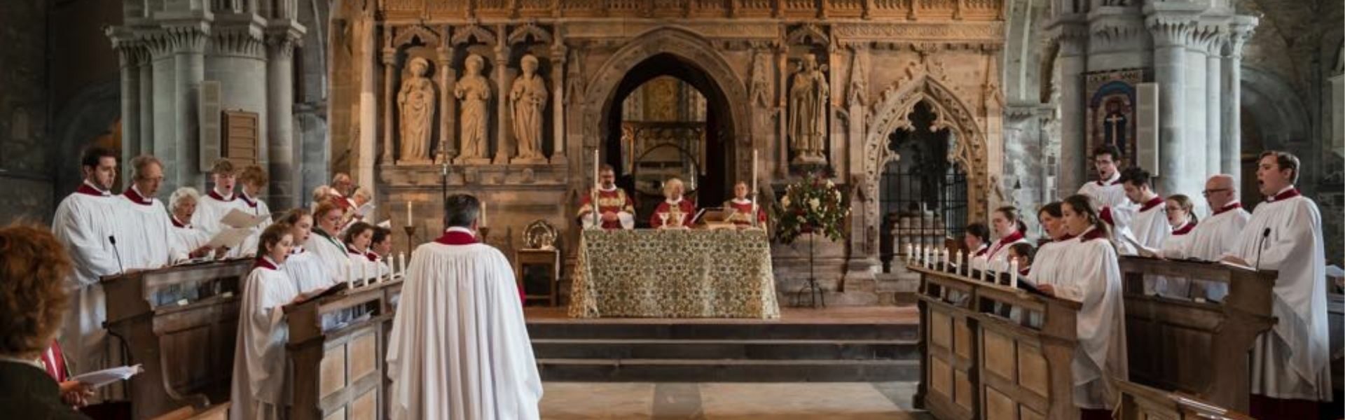 At some choral foundations, the priests also choose to chant parts of the Eucharistic prayer to plainsong. The music for this has its origins in the ‘Sarum Rite’, the liturgy used by most cathedrals and churches in England before the Reformation.